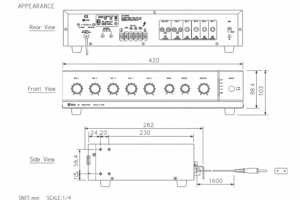 The A-1061 is a mixer power amplifier featuring high cost-performance suited for broadcasting paging or background music in schools, offices, and shops.